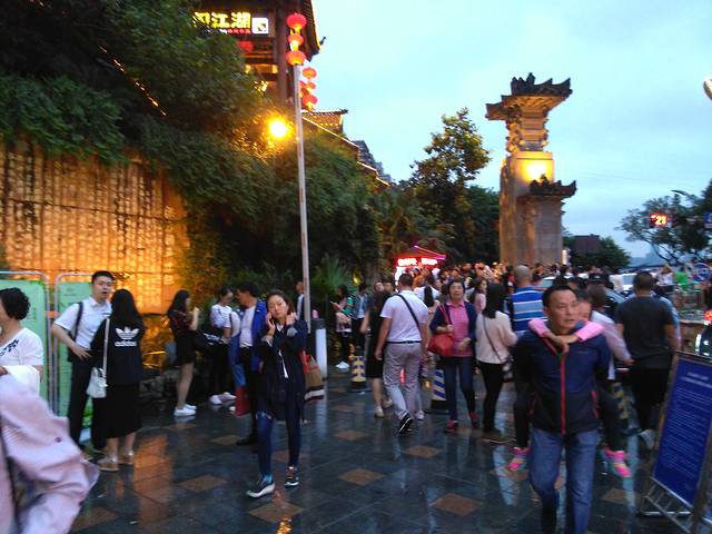 晚上6点来到洪崖洞,这里人实在太多,排队时就有人挤倒地。进去才发现惊叹,原来是从楼顶下来的,让人想不到。