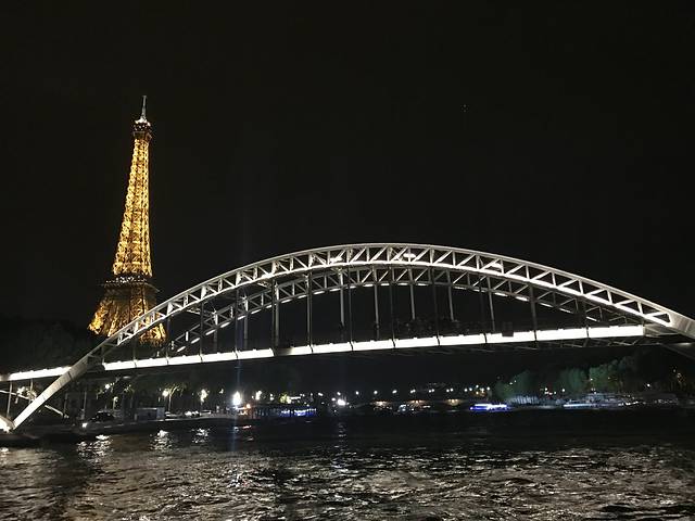夜晚的塞纳河游船,选择了巴黎人游船码头,晚餐也在这里。