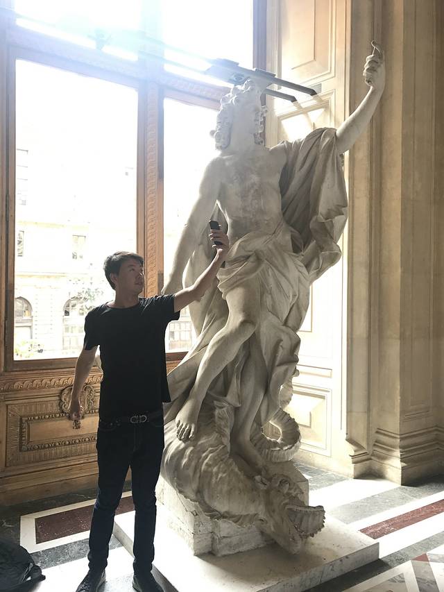 正好这次有朋友介绍了一个法国的卢浮宫讲解员陪我半天,PIEER,中文讲的非常好,爸爸是法国人,妈妈是波兰人,娶了一个西双版纳的中国姑娘。家里是做艺术品收藏生意的,从小就被逼着一周去三次卢浮宫,所以对欧洲的艺术品比较懂。前几天靳东来巴黎就是他陪的,这次有幸能陪我半天儿,重新看看卢浮宫。