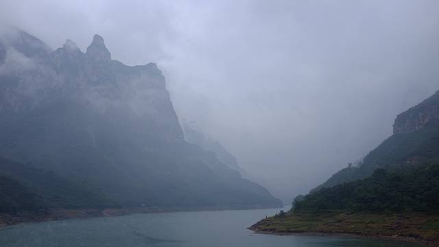 子房湖,烟雾迷蒙,山水曲幽,载!