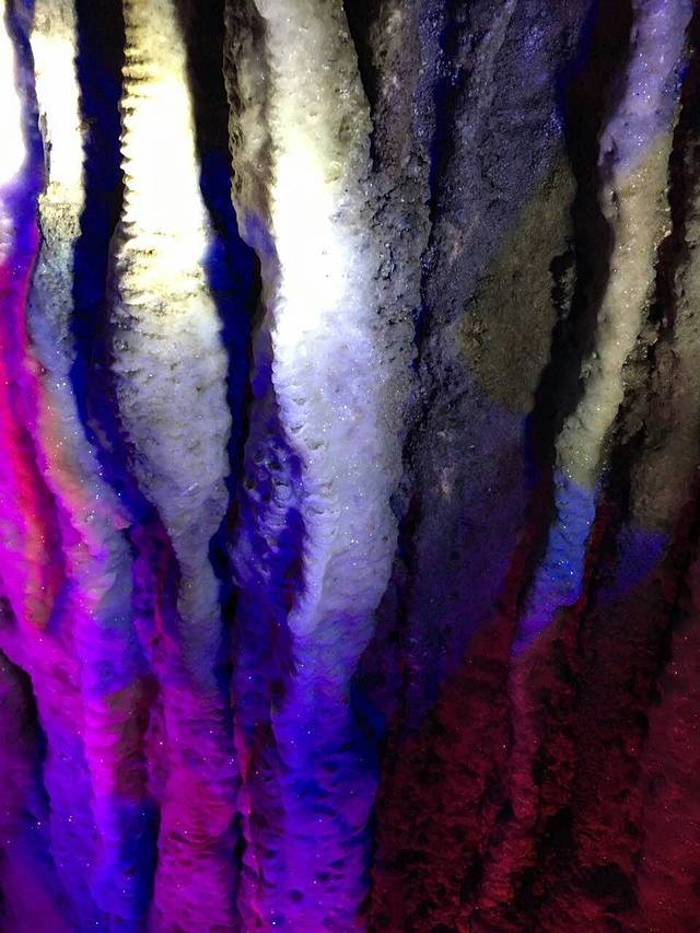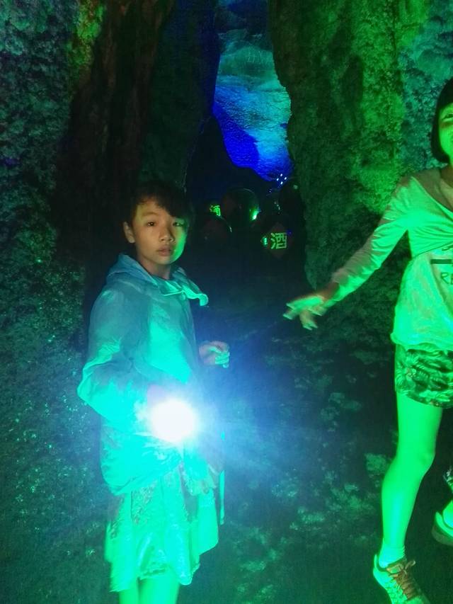 景区:全程游玩下来一个半小时至三个小时左右,看个人速度。景区都必须由导游(门票就包括导游费)带队方可进入。国庆期间很快就可以排到,一般等个几分钟。刚进洞口风很大,感觉凉飕飕的,到里面就好很多。洞内各个景点都是靠灯光打光的,看上去色彩斑斓,没有打灯感觉都是石头,不过石头也很有特色。溶洞顶会有滴水,还有地下河,各种石头感觉很棒,没玩过溶洞的建议可以来看看,洞内有各种奇形怪状的石头,可以大开眼界。溶洞内还有些没开放的区域,别到处乱走哦。景区前半段跟着导游走,后半部分自己走,不过每个一小段路就有一个导游介绍景点,全程下来不下十个导游,导游主要提醒游客注意安全,洞内很湿滑,需要注意。