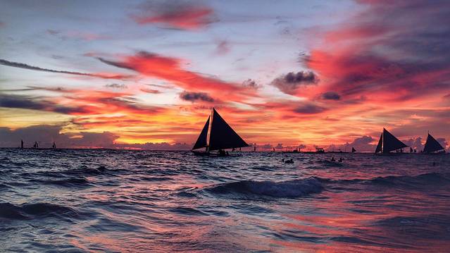 日落帆是观赏日落的最好方法. 很多人在网上预订的.其实在长滩岛自我感觉没有必要提前预订任何项目.随自己心情 根据时间 天气来游玩最好. 可以提前知晓大概项目的价位就可以了.要不然像我一样是个大坑.日落帆有小黑刚开始报价2000p/2个人 一开始我朋友就心动了.没有还价就想坐了.下一个小黑 1500p.1000p我们还是没有选择. 后来遇一女菲律宾人 直接开价 800p/2个人 30分钟 5:30出发看日落.不是日落时间1个小时.感觉是我们遇到最便宜的.也是没有还价 😤说到这是我最伤心的💔 在这边定了半日游 水晶岛+浅浮 还可以➕(普卡海滩)可惜我们上午过去了就没有要. 这全部一起4000p/2人 哎😭😭 最合理的价格应该是日落帆600p/2人. 半日游2000p/2人可以了.
