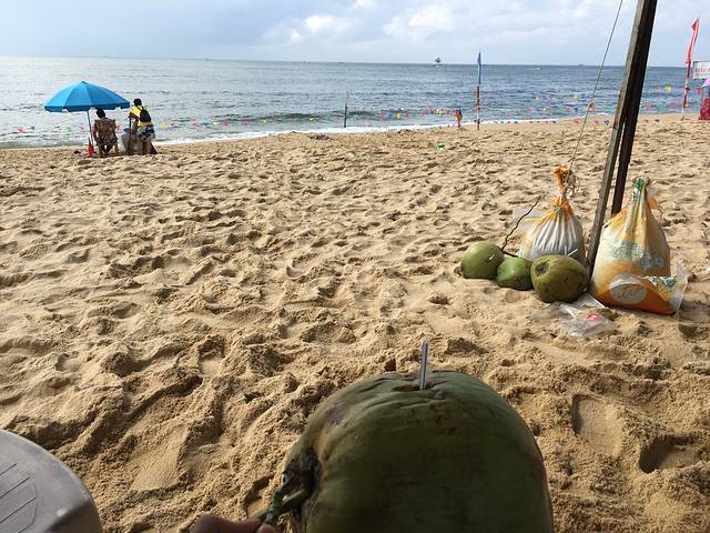 一个人喝椰子,等太阳小一点