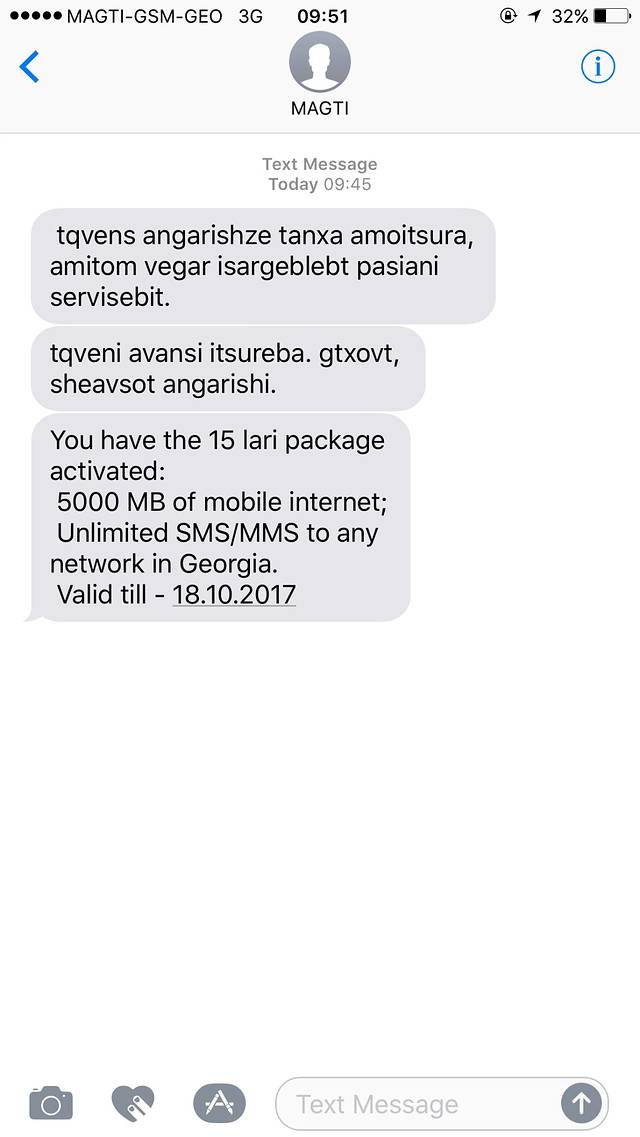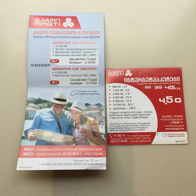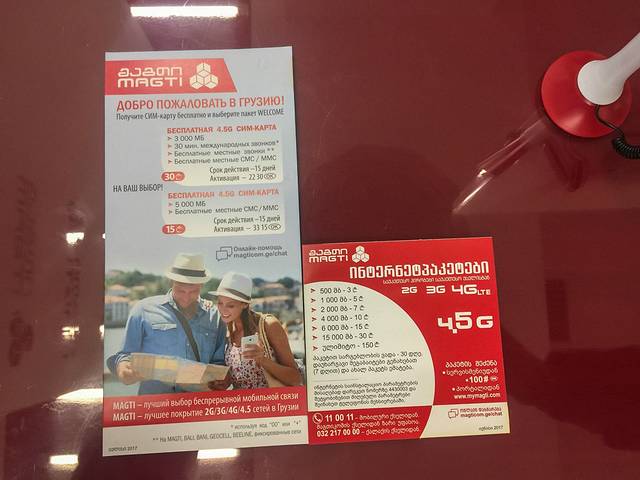 格鲁吉亚的通讯公司有Geocell、MagtiCom、Beeline,3G、4G(一般显示为LTE)信号都还不错。之前看攻略说的Magticom的信号是,15GEL的5G流量的套餐,绝对够用的节奏。
