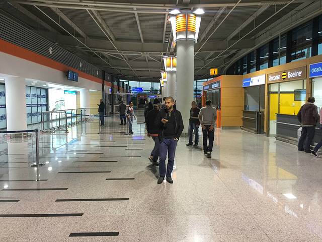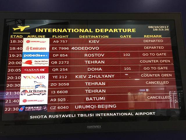 到了机场,也才六点,还不能办值机手续。这个国家也比较死板,就算是国际航班,基本上提前两个半小时才能办值机手续。无聊着数着自己手中的硬币,基本上只够换回两刀。就这样漫无目的穿梭在出发厅和到达厅之间。第比利斯机场的到达厅并不是在出发厅的楼下,而是在到达厅的旁边。乘坐37路的驴友,一定记得,坐车是在出发厅旁边哦!ATM机取钱,也得移步到出发厅。要退公交卡的驴友,也一定记得,在,市内的地铁站退完。机场是不能退卡的。终于等到了办理登机牌的时间。