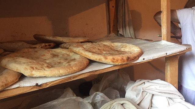 我们住的酒店没有早餐,我只能买个饼子,再买点鱼罐头等填饱肚子好了。不过这个饼子真是比较实惠,1 GEL 这么大一个。