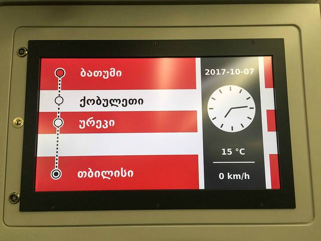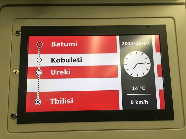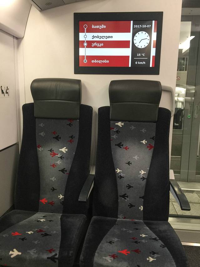 难得在格鲁吉亚见到这么好的火车。检票也稍微正规一点,至少要看护照的!巴统开往第比利斯的火车是双层豪华列车,虽然只有五六节车厢。洗手间的设备,座椅都是比较好的。列车总共停靠四站。