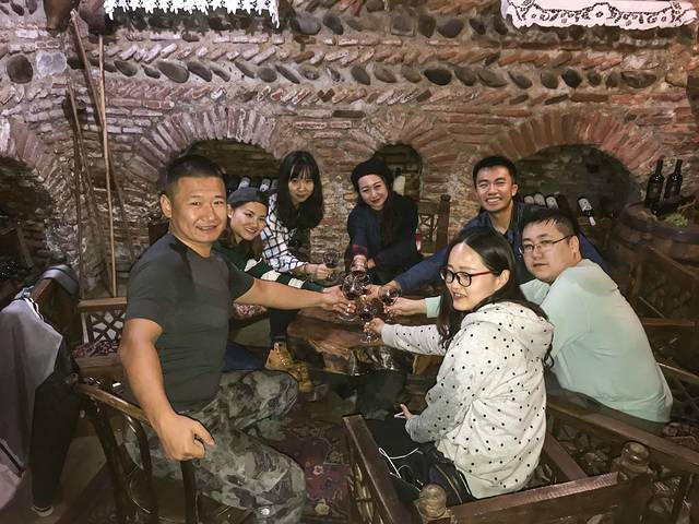 大概一个小时的车程,就到达了酒庄。看了看品酒的套餐价格,本来想买个入门款的7GEL。后来选择了中间款的15GEL。其实对于一般不是特别懂酒的人来说,买个7GEL的就可以了,然后主要是来买酒。酒庄的酒比超市的还便宜,超市的免税品店的还便宜。酒庄这向导英语还不错,简单的介绍了一下,这家酒庄及格鲁吉亚红酒的历史。带我们又品尝了两款酒,还不错。总的来说,这家总体感觉还是比较棒的,隧道比较长,很漂亮。参观完了酒庄,为整个格鲁吉亚行程,划上了圆满的句号。