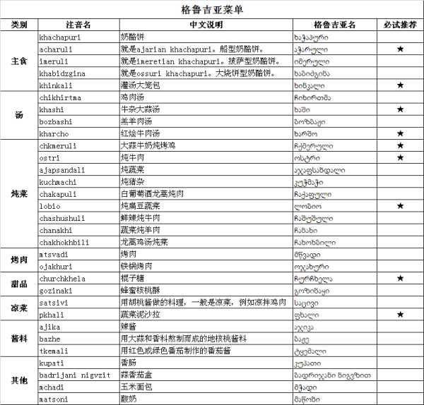 盗图驴友总结的格鲁吉亚美食推荐菜单