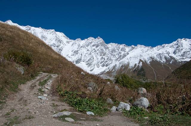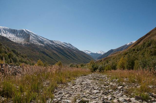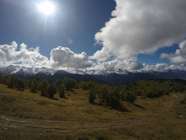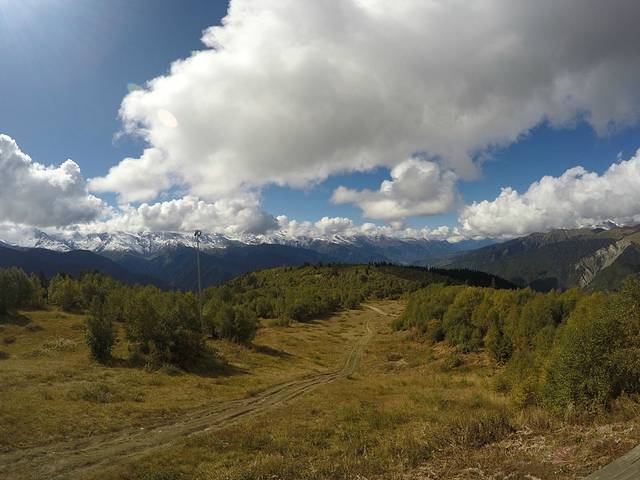 前一天晚上几个小伙伴找好去乌苏故里的车,想的明天能晚点回来,多在乌苏故里停留一会。找好了拼车的小伙伴也是一波多折。这里想提醒一下想去车站拼车的小伙伴,千万别去太晚,之前看攻略上有说9点多才有陆续拼车的,往返车费一般在30GEL,其实7:30开始就有很多人开始拼车了,运气不好的话9点半可能不太容易拼到车,再者,梅斯蒂亚,没有什么固定的汽车售票点,基本上都是商店在卖票,而且价钱他们还可以随意抬高,所以如果提前买票一定要和老板讲价。不过其实,完全没必要提前买乌苏故里的票。由于我们包的7座的三菱车,越野性能比较好,才能1小时45分钟的车程就到达了乌苏故里。我们的司机师傅,英语比较好,人也很好,大家如果要包车,可以找他哦。到了乌苏故里,其实徒步线路只有一条,景色还行吧!全程徒步下来,常规需要7-8小时。也可以选择包车前往,大概是一辆车往返是60GEL,到了车走不动的地方,大概徒步往返需要再走1.5-2小时。