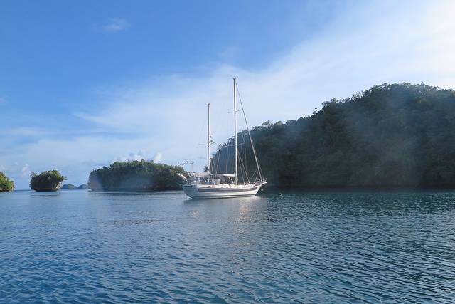 我喜欢大海,而JK却很容易晕船。根据以往的出海经验,只要浪稍微大一点他就会晕船。而帕劳的海不算太平静,特别是我们现在的雨季,总会有大风大浪。所以来帕劳之前,我们特意在香港买了两板晕船药。按照说明书,每六小时服用一颗,JK就早上起来一颗,中午饭后一颗,怎么知道药效太好了,每天晚上十点他就昏睡过去了···帕劳时间十点···相当于国内时间九点!上次九点钟睡觉的时候我大概还在上小学吧···
