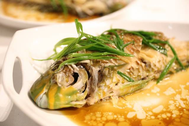 接下来上的是蒸海鱼,味道不错,但是感觉蒸得有点老。说到蒸鱼,广州的蒸鱼应该是无敌了吧。