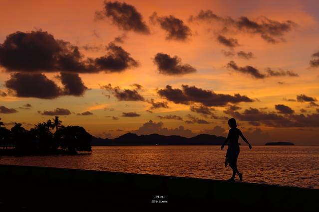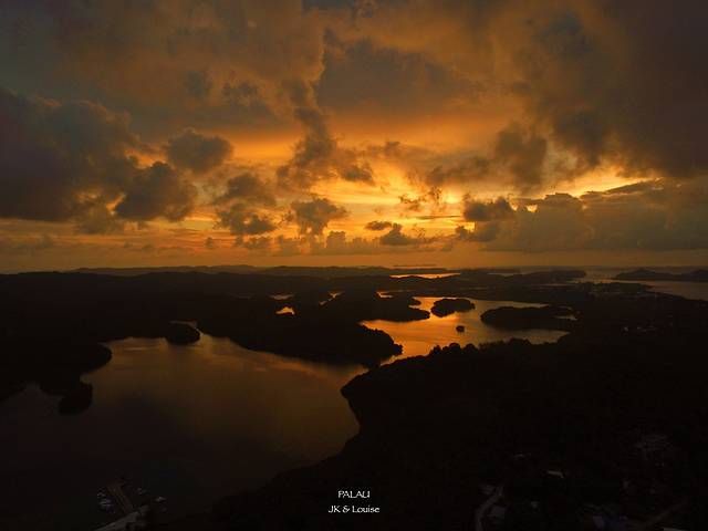 原本打算开车到KB大桥看日落,无奈老板给我们验车验得太仔细了,导致我们还来不及赶到KB大桥就已经日落了,我们在路上看到了那个金色的太阳缓缓落下,染得半边天空都变成了金色。虽然看不到日落,但是落日后的余晖却同样惊艳,看来帕劳并不只有海是七种颜色,连天也是七彩的。