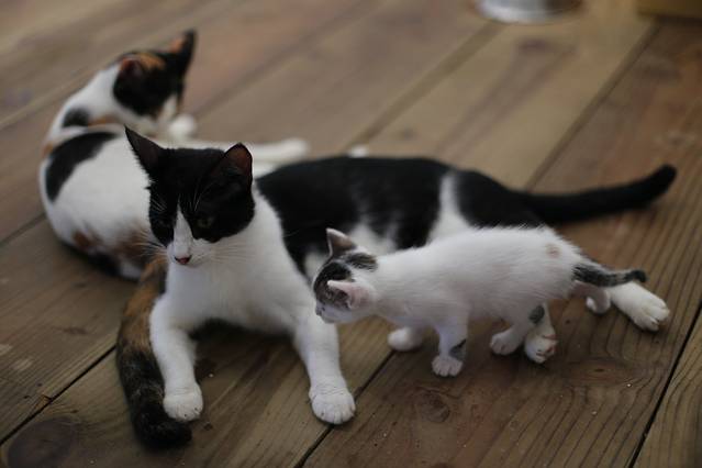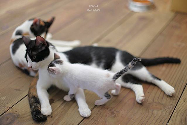 这里的主人养了几只猫咪,这会儿刚好猫咪们生了小猫,不到一个月大的小猫还没断奶,却胆子很大,经常在我们吃早餐的时候摇摇晃晃地走到你旁边喵喵叫着讨吃的。太萌了!