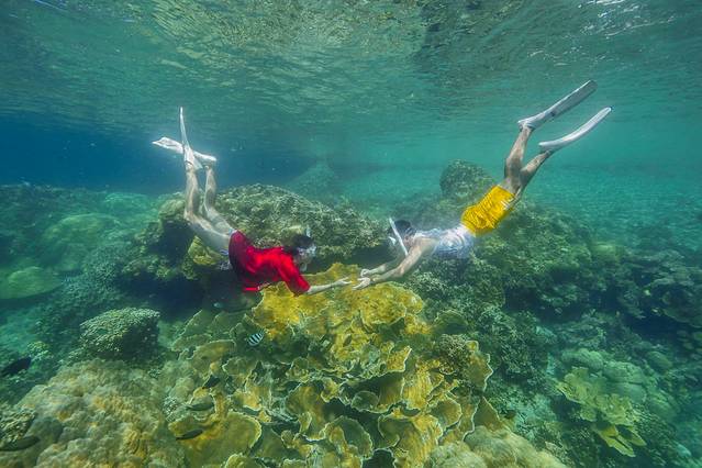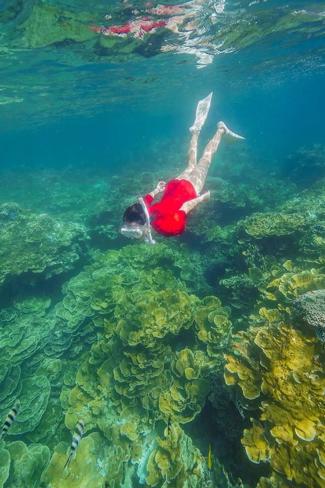 如果你又想参加三天的浮潜项目,又是潜水爱好者想探寻帕劳水下的奥秘,你就会发现在帕劳待五天是完全不够用的。这里可能有人会质疑,都已经要在帕劳深潜了,还何必参加浮潜项目了,不就多此一举吗?不不不!作为女生我想说,在帕劳深潜确实是一个很棒的体验,但是只有浮潜才能拍出美美的照片呀!浮潜无论是光线还是海水通透性都比深潜好太多了!其实拍水下的照片老公也可以帮我拍好,但是在水下却无法实现两人合照,因此拍水下婚纱照只能找当地的摄影机构来拍。帕劳就有两三家这样的水下摄影机构,不仅可以定制水下婚纱照,也可以预约浮潜的跟拍,在马蜂窝就可以订到。