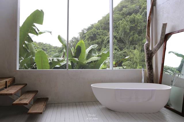 第二天一大早起来就被眼前这不真实的画面给迷住了,眼前就是五米高的大窗户,窗外就是各种绿植和山峦,我都忘记我是被闹钟叫醒的还是被鸟鸣和风吹拂树叶的沙沙声给叫醒的,睡在大自然里的感觉大概就是这样吧。片刻之后,我极不舍得的起来我的大床,收拾收拾自己准备今天第一天的出海。