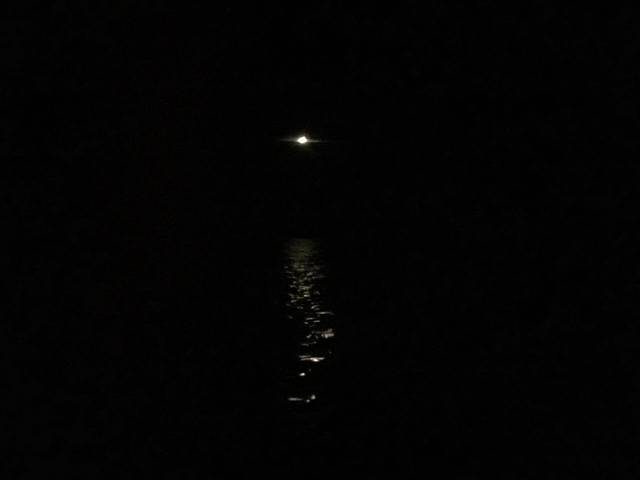 船上没有开灯的时候,这就是手机唯一能照到的东西。月亮,以及倒影在海面的月光。
