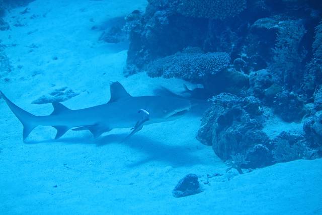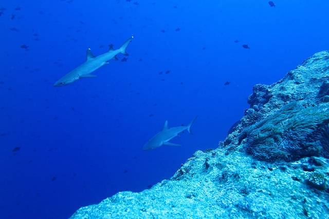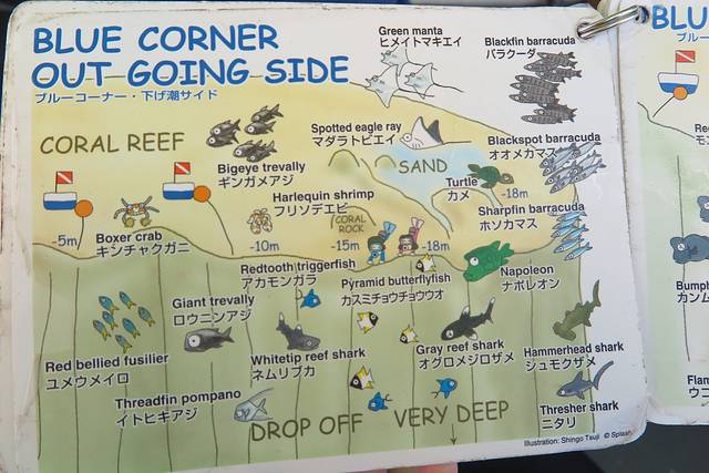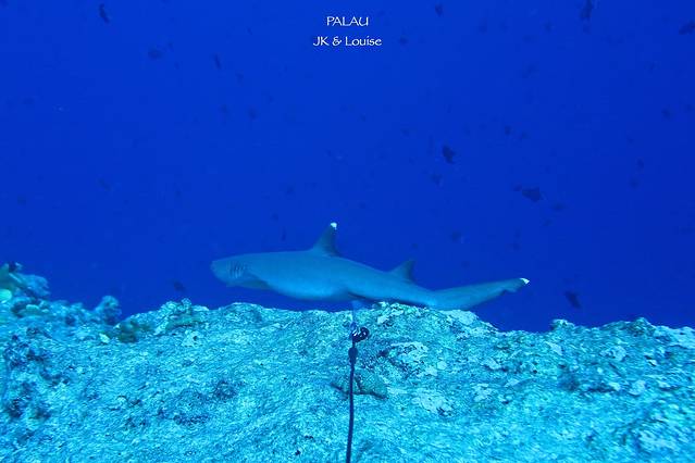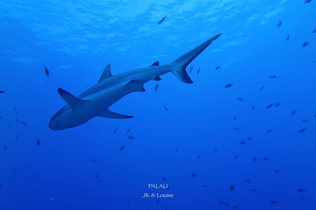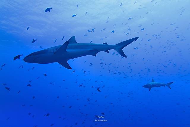 蓝角里面的鲨鱼和帕劳鲨鱼城看到的鲨鱼是完全不一样的。鲨鱼城是帕劳有名的一个浮潜点,而这里的鲨鱼都是由地接下水拿一些食物把鲨鱼吸引上来的,虽然帕劳当地政府已经命令禁止这种行为,但是依然有不少地接依然这么干,毕竟浮潜游客希望能看到鲨鱼,与帕劳罚款的金额比起来,他们能赚到的或许更多吧。如果鲨鱼城的鲨鱼长期接受这种人工喂食,总有一天它会失去野性失去感受洋流迁徙的能力,一步步沦为被人类圈养起来的野生动物园吧,可悲!