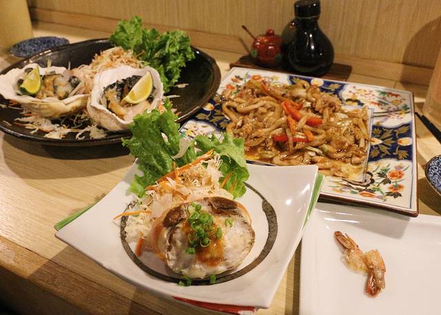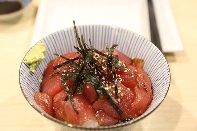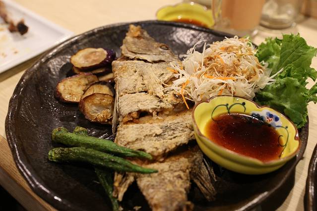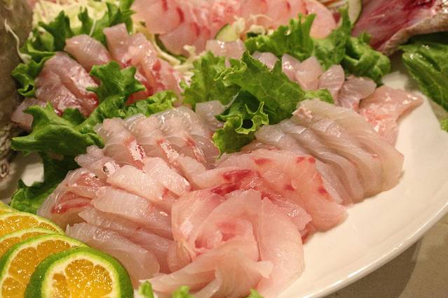 这盘刺身是六个人的分量,分量太大了,如果真的把它吃完估计后面的菜都吃不下了!鱼肉很新鲜很肥美,个人感觉跟金枪鱼的口感和味道一样的。