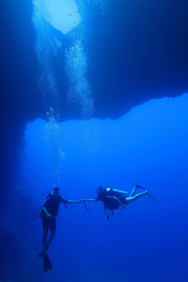 在蓝洞大约玩了半个小时左右,我们便从这个小洞游了出去。当时的感觉就是在昏暗的洞穴里看到一束光,我们就朝着光的方向游去,心里莫名地感动了。
