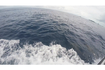仅仅一个单词就把一船被风吹得精神涣散的我们团体鼓舞出起来!大家就近抓起身边的相机就往船头方向冲了出去!果然,远处看到一群频频跃出海面的海豚,这还是我第一次在大海里看到海豚。船长开始往海豚前进的方向开去,这追海豚什么的还得有技巧,你不能直接冲向海豚群,会把他们吓得掉头跑,要预判他们的航向,然后开到海豚前面,让他们来追你...反正船长就是很厉害就对了。。。我们开始慢慢接近海豚,跃出海面的已经很多了,不难想象海下会是多大的一群。海豚的速度真的非常快,我们的船几乎一致在这片海域全速前进。因为速度太快我们的渣相机根本来不及捕捉面前的海豚,而远处的海豚又拍不清楚,只能把这有爱的一幕记在心里了~