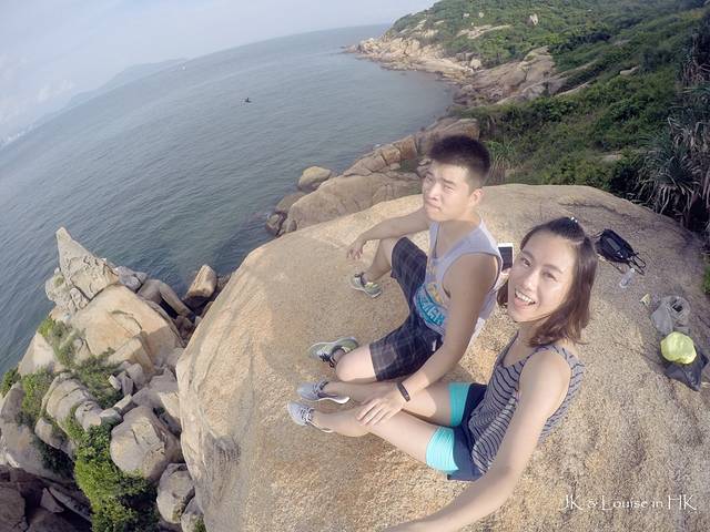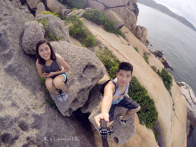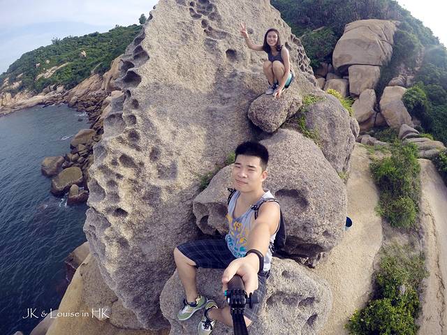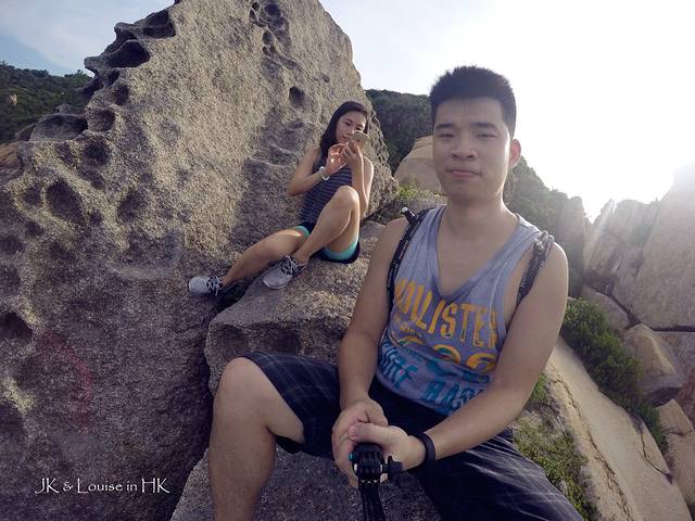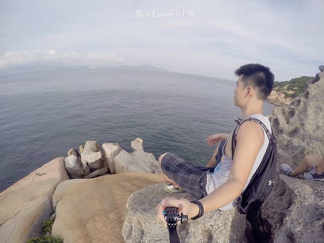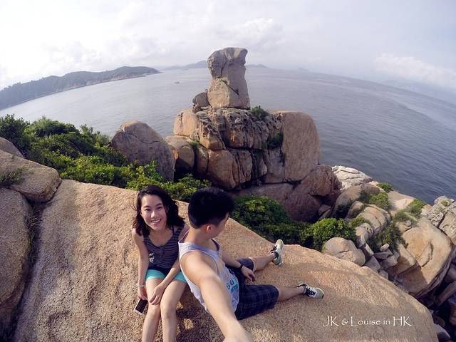 小岛沿着海边的路都是这种造型各异的小石山,我们也是玩性大发开始各种攀爬。不知道大家曾经有没有一个爬上爬下的童年时光,反正我小时候,跟着玩伴们到处爬墙爬假山爬树,每天都把自己弄得灰头土脸地回家,当时就觉得爬墙十分有趣。而攀爬长洲岛的这些小石山就有当时童年胡闹的感觉,我强行带着JK花了一个下午的时间在这些小石山中上下闹腾穿行,连我自己都get不到意义在哪,只记得自己度过了一个非常有趣的下午。