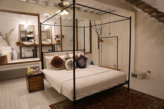 我们住的房型叫柒隅,是一间带有点复古风格的复式房间,进门是在二楼,也就是客厅,而楼下就是卧室。