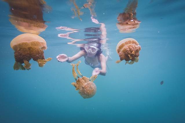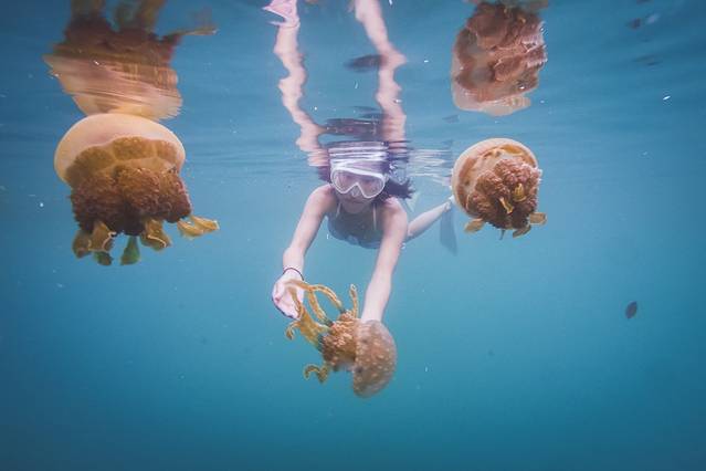 帕劳的无毒水母湖是全世界独一无二的,去帕劳就一定要去水母湖玩一圈这是国际惯例。然而因为厄尼尔效应,水母湖的盐分变高,影响了水母的生存环境,水母变得越来越少,我八月份定浮潜的时候和当地导游交流了一下,他说不推荐去水母湖了,因为上回去看的时候发现水母湖里只有一只水母了!excuse me?!一只水母是什么鬼!照片里那密密麻麻的水母都消失了吗!这个故事告诉我们···看美景要趁早···或许等厄尼尔效应结束之后,水母又会从新出现,只能怪我去不逢时啊。这么一说,我深刻怀疑帕劳决定继续免签是不是因为水母没有了,政府都不好意思收你签证费了呢!