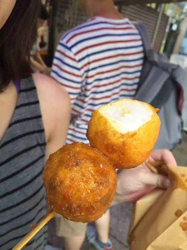 一登上长洲岛就会看到一大堆小吃,这个超大粒的咖喱鱼蛋,差不多有半个拳头那么大,而且超级弹牙,这里的水果冰沙也很货真价实,我喝了一杯芒果冰沙,超甜超好喝!