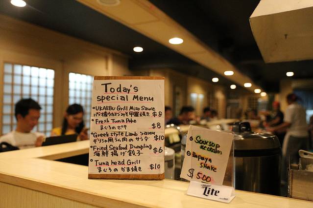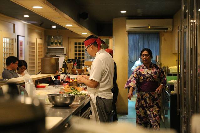 这家日料店的店面很小,只有一条围可容纳不到20人左右的吧台,餐厅的服务员一眼看去就知道是菲律宾人(帕劳很多外来打工的都是菲律宾人),而他们却统一穿着和服。瞬间觉得这个日料店应该还是挺靠谱的。