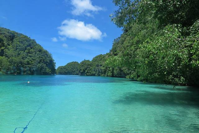 但其实帕劳的无毒水母湖不止一个,我们游客常去的水母湖是要翻过一座小山才能抵达的黄金水母湖,那里曾经有密密麻麻的水母,如今去只偶见几只小水母。所以大部分出海浮潜都不再去黄金水母湖了,浪费时间且看不到什么。然而在帕劳还有一些秘密水母湖,虽然里面的水母也不多,但是还是能看到几只大水母在里面游来游去,我们这次去帕劳玩就跟船去了两次秘密水母湖,果冻般的水母果然很可爱呢~