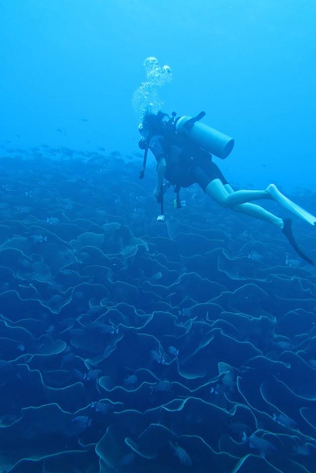 超哥说这是这片硬珊瑚区里最大的一朵玫瑰珊瑚,我和JK在这最大的海底永生花前相遇,原谅我的浪漫小情怀又迸发了~