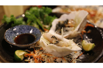 帕劳有名巨蚌城里面的大贝壳大约都有一百多岁了,其中数量最多的要数砗磲贝。在菜单上有看到砗磲贝的刺身,一份20刀,没有腥味,也没什么味道,口感挺好,韧韧的。上菜的时候,服务员特别强调说这盘砗磲贝刺身是切了一个大贝壳里面的蚌肉,然后放进这个小贝壳里上菜。其实我一眼也看出来了,这满满的蚌肉也算是真材实料了。