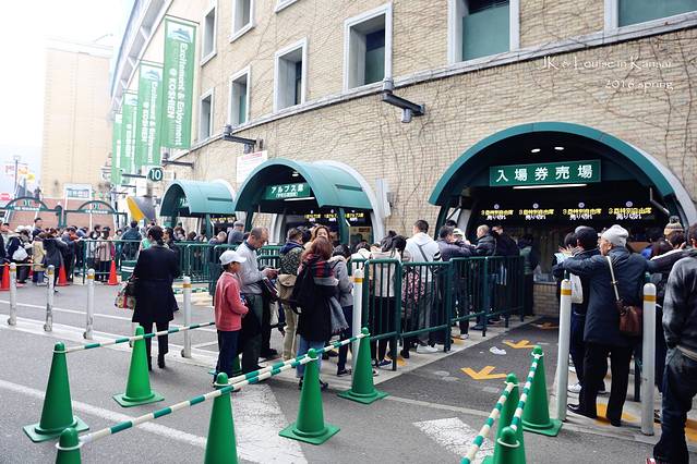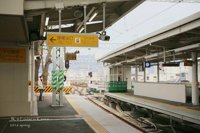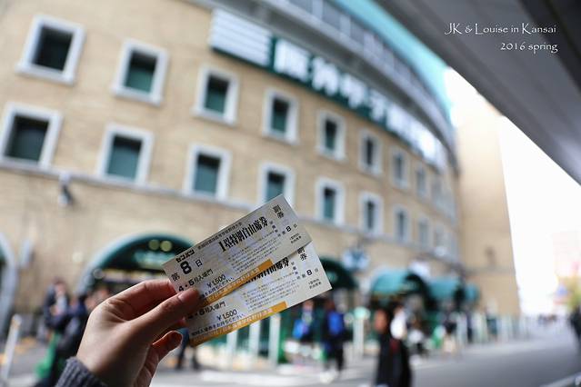 今天的第一站就是阪神甲子园棒球场,从梅田地铁站有阪神电车可以直达甲子园,售票处还有专门为去甲子园设置的往返优惠票。买票的人还挺多的,当时我就窃喜了,看来今天甲子园是有比赛的。甲子园站有专门的球场指引,不过只要跟着人群走,甲子园就在不远处。