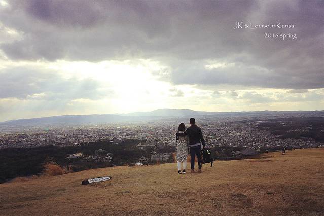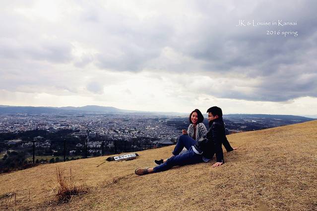 奈良若草山的一重目,已经能够俯瞰整个奈良的景色了,站在城市的上空总是让人舒畅万分。等不到日落,我已在山上的狂风中凌乱了。