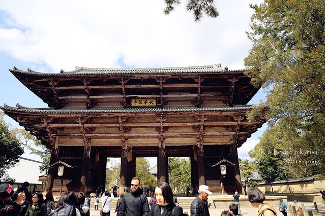离开冰室社继续往奈良公园走,就会来到东大寺,这是奈良最具代表性的佛寺。下面这座雄伟高大的建筑就是它的南大门,这已经是镰仓时代所以盖的了,由18跟21公尺高的巨柱支持起来的大门,展现出宏硕非凡的气势。