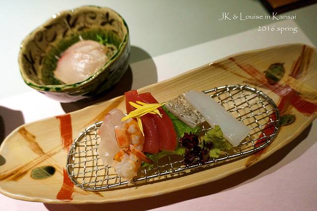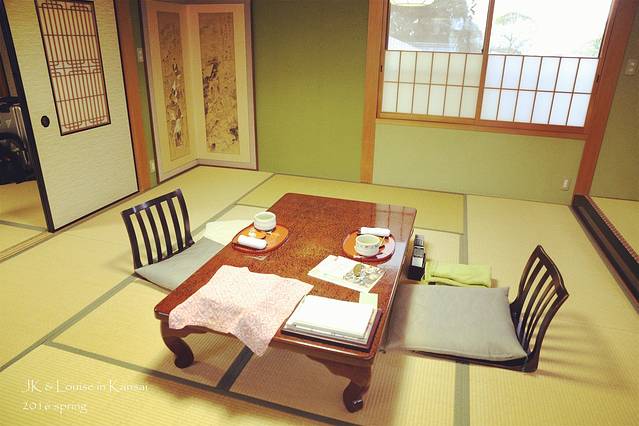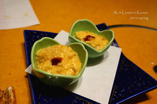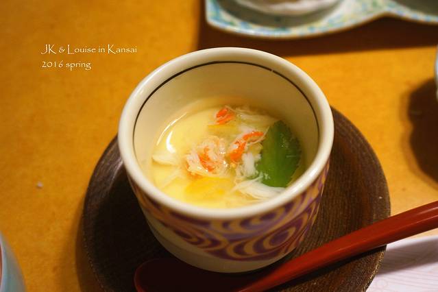 旅馆晚上也提供会席料理,我们两选了一份海鲜料理和一份牛肉料理。料理同样是一份份上,食物品质和分量比在昨天在奈良吃的会席料理好吃许多,但摆盘和餐具的运用却不如在奈良的那餐精致。吃一餐饭,两个多小时就过去了。