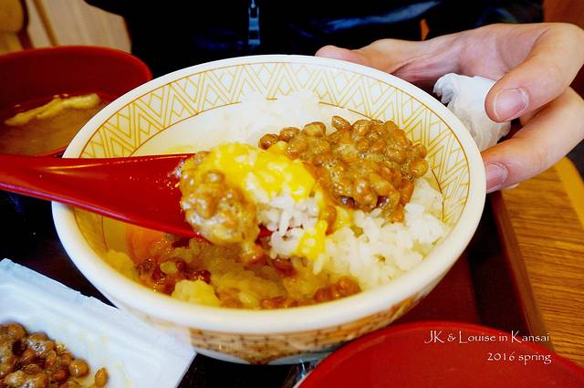 这是纳豆饭,虽然知道纳豆对身体很好,但是这个口感实在是让人不方便接受···