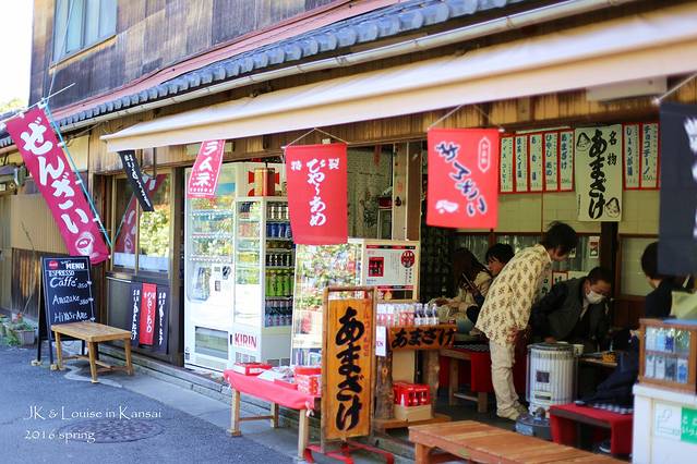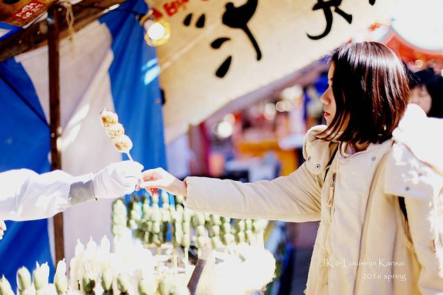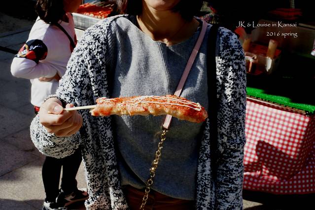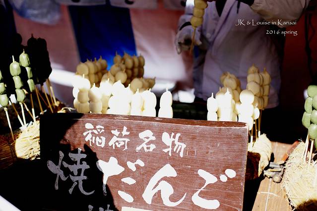 从伏见稻荷后门转出来就有一大片买小吃的摊位,没刹住车,我们把想吃都吃了一圈。