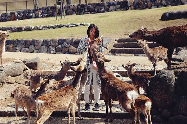 来到奈良公园,随处可见小鹿。这里的小鹿都不怕人,为了向你讨要鹿饼干,还会一直对你点头作揖,这些都是奈良公园的工作人员专门训练过的。