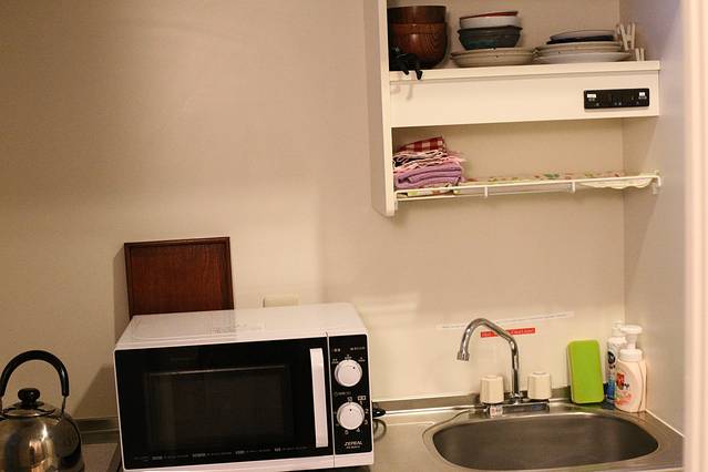 房间是如我所料的小清新,厕所和浴室很干净,厨房的设备也很齐全,这将是我们在京都3天的落脚点了。