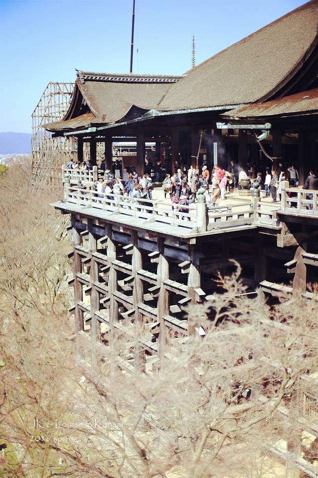 这就是清水寺的空中大舞台,尽管这里的樱花尚未开放,但却已经是一番人挤人的情况。