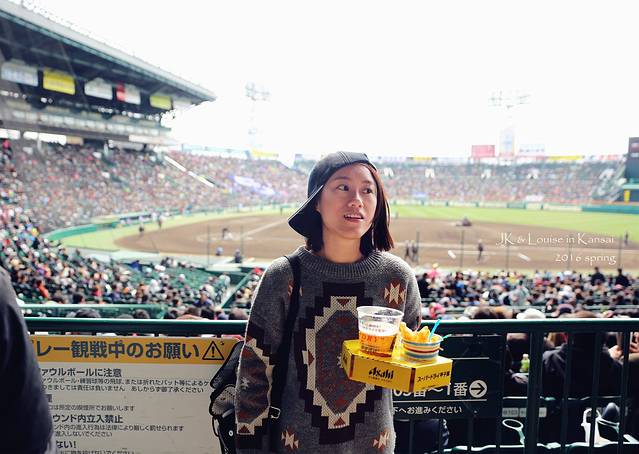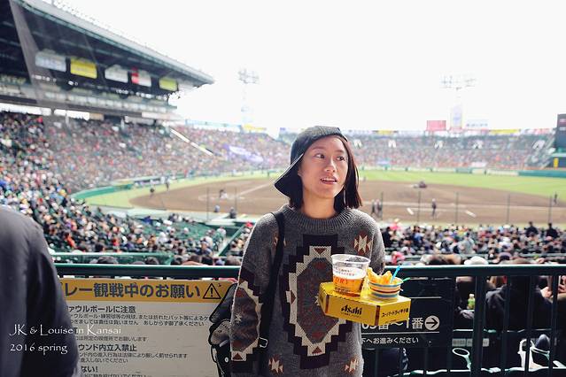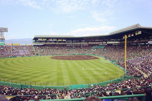 我们在一垒席找好位置坐下,这是棒球刚刚进行到第三局,正是大家都进入状态的时候。日本每年都会在各区进行比赛选拔,只有最强的队伍才能脱颖而出进入甲子园比赛,难怪说甲子园是每个棒球学生的梦想呢。怎么说呢,作为日本高校棒球,居然能在这么有名的球场上打比赛,而且受到如此多的瞩目,确实很让人振奋,这不仅是一份为校争光的荣誉,也能为自己未来的事业加分。