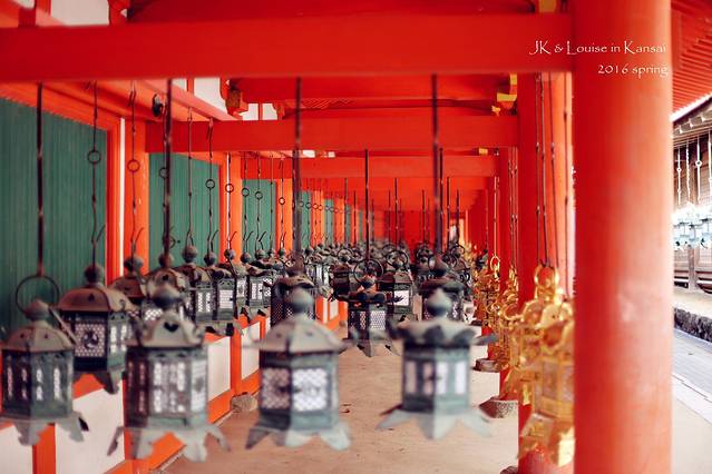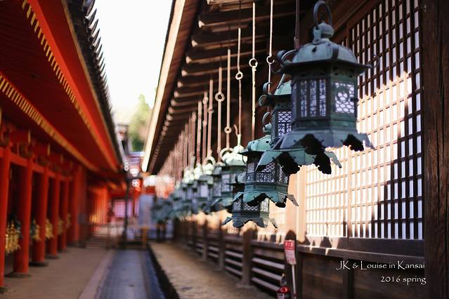 穿过奈良公园继续往山上走,就能来到春日大社。春日大社整体建筑以朱红色为主,和绿色的青苔冲撞出活泼的气氛。这里偶尔会出没一两只胆小内敛的小鹿,可能比较少接触到人群,所以就算看到鹿饼干也表现的非常谨慎。