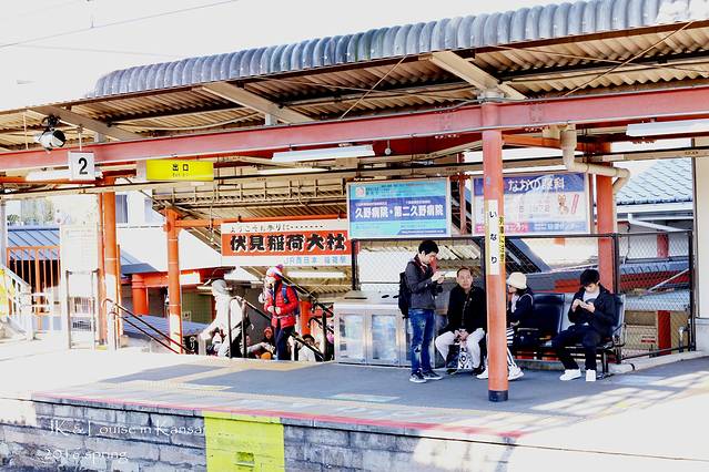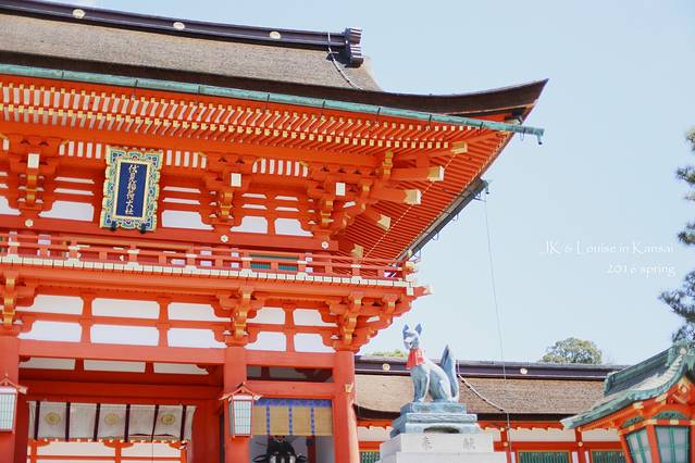 下午,我们准备去先去伏见稻荷大社。回到京都站,坐JR奈良线在稻荷站一下车就到指示牌了,跟着人群走,不就就看到伏见稻荷大社朱红色的建筑了。这天刚好遇到了一个日本的什么什么节日,所以日本人都在放假(机场日本小哥说的),所以来大社的日本游客特别特别特别的多!千本鸟居几乎挤满了人,走着走着还遇到直接堵死动不了的情况!所以山下的一段路我们都是在千本鸟居外面走,直到爬完山下的一段路,人开始慢慢变少,我们才回到鸟居里面继续向上爬。