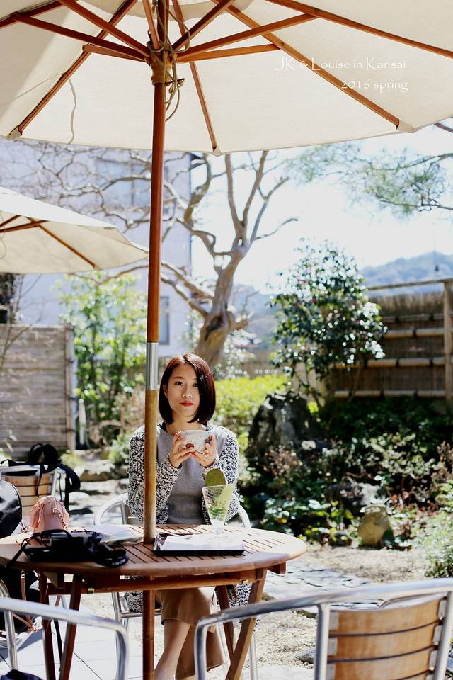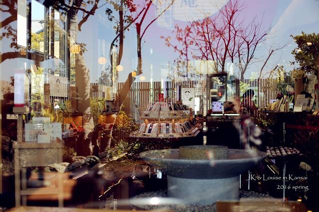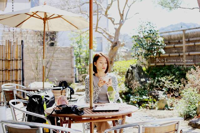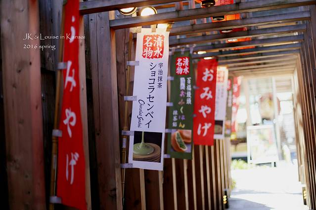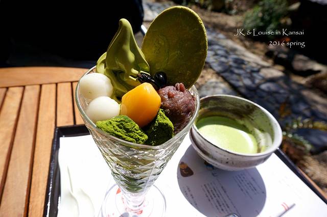 我一向不喜欢拥挤的景点,随便逛了一圈就离开了。外面的清水坂更是热闹非凡,这里坐落这许多买纪念品的小店,能淘到不少有趣的小东西。走着走着,在店铺与店铺之间发现一条不起眼的小过道(下图),看起来像是他吃甜品的地方,刚好我们也逛累了,便走了进去,没想到里面别有洞天,有个独立的小庭院,左边是卖抹茶甜品的,右边是同一牌子可以带走作为伴手礼的甜品店。里面人不多,空间也大,我们在庭院找地方坐下,点了一碗抹茶和一份抹茶芭菲,打算就这样打发掉上午的时间。