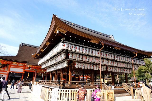 从清水寺走半小时左右就能到八坂神社、圆山公园和祗园这一带。可能是品种不同,这一带的樱花开得稍微多一点。