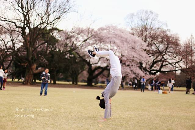 东京有许多赏樱的地方,查看地图后,我们决定去比较顺路的新宿御园赏樱。东京的樱花开得比较早,新宿御园已有许许多多的人带着毯子和零食席地而坐,一边赏樱一边聊天,非常热闹。