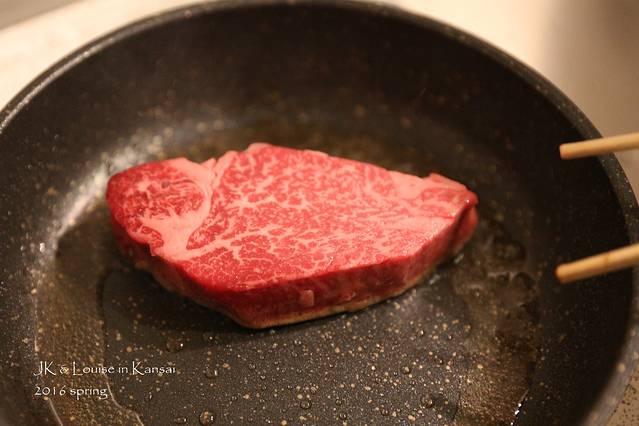 下面开始煎第二块和牛,这块比较厚,但均匀的脂肪依然清晰可见,写游记的我已经流口水了好吗!好想再吃一块!