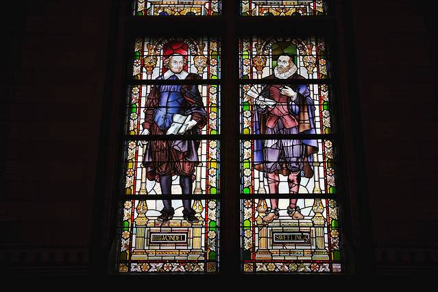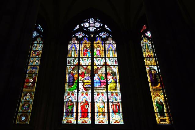 彩绘的玻璃窗美丽异常,窗上的人物栩栩如生,在阳光的折射下,投射成五颜六色的光束,照在大教堂的每个角落。